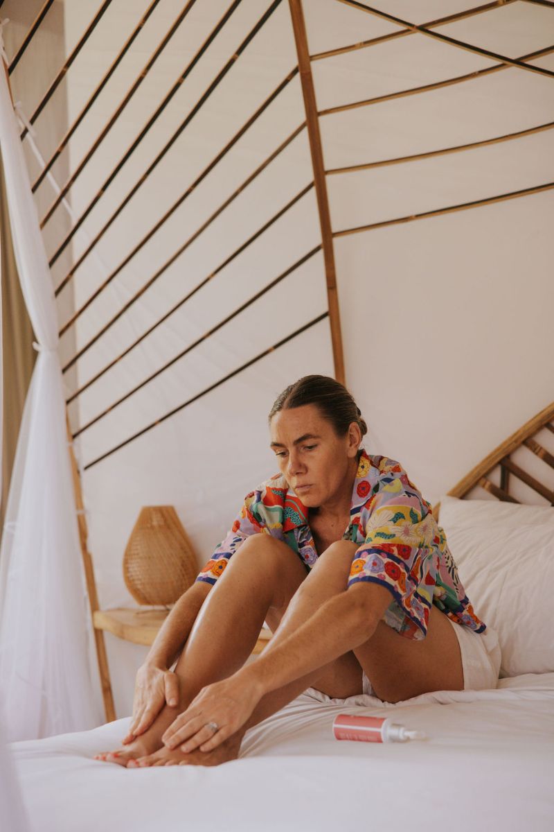 Apply 1-2 pumps into the palm of your hand and massage into your lower back, behind your knees and tops of your feet 20 minutes prior to bedtime.
